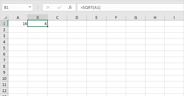 The sqrt function in excel returns the square root of a number.