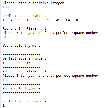 The math.sqrt() method returns the square root of the number. It contains well written, well thought and well explained computer science and programming articles, . You have to organize your code and group functionality into methods. Using sqrt() method · import java.util.scanner; You also need to check if lower bound is a perfect square or not. Now, the question arises what must be added to get the next . You're given two numbers num1 and num2. If the result is an integer number then the given number is a perfect square else it is not . B) compare mid*mid with x. A computer science portal for geeks. Suppose there are two numbers 86 and 104 and you are required to find a number them which is a perfect square. 1) start with 'start' = 0, end = 'x', 2) do following while 'start' is smaller than or equal to 'end'. To check whether a number is perfect square, we take the square root of the number and then convert it to an integer and then multiply the integer with itself.
