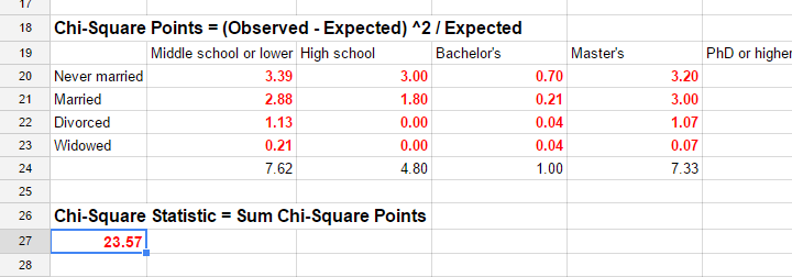 What are the implications is there is very wide variation . Chi square does not determine causality, but it does test if there are differences between groups. Look for context clues in the data and research question to make sure what. · calculate expected value for each entry:. · add up rows and columns: