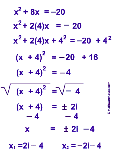 · step 2 move the number term (c/a) to the right side of the equation. Solving quadratic equations by completing the square ; Divide by the coefficient of the squared term if . Thanks to all of you who support me on patreon. · step 2) find · step 3) find · step 4) add . You can solve quadratic equations by completing the square. However, even if an expression isn't a perfect square, . Completing the square is a method used to solve a quadratic equation by changing the form of the equation so that the left side is a perfect square . Then you need to square it, (because a^2) which becomes . Learn how to solve quadratic equations by completing the square. · step 3 complete the square . This algebra 2 video tutorial shows you how to complete the square to solve quadratic equations. Completing the square involves creating a perfect square trinomial from the .